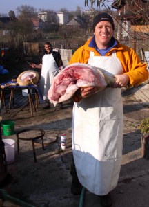 Def a Yay from me for having to the courage to join in traditional slaughter of pigs that occurs in your Slovakian village every year.