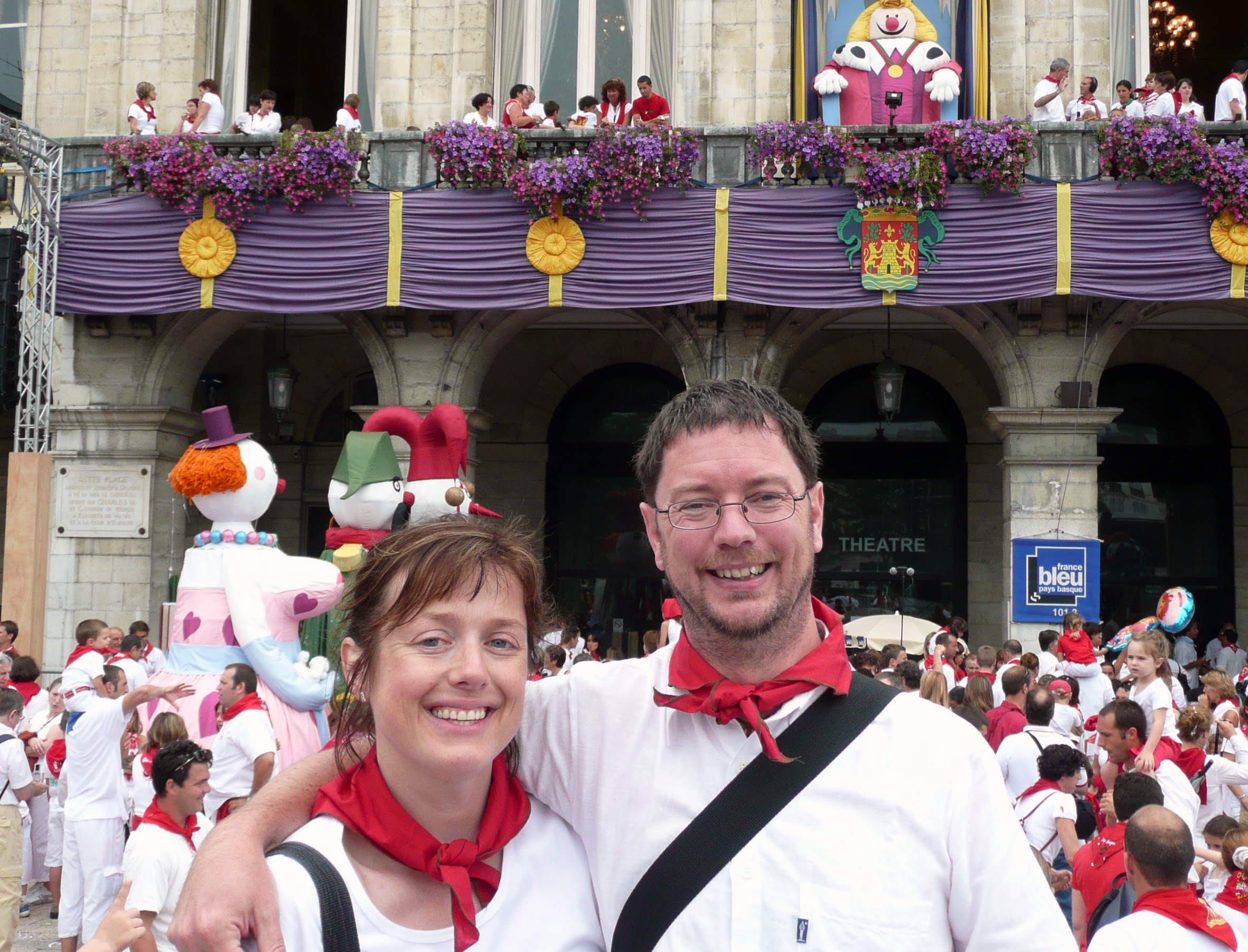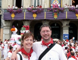 img: Mardi Michels and her mari, Mr Neil, at the Fêtes de Bayonne (2008).