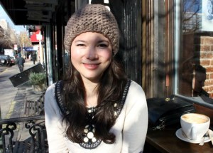 img: Lei Lei Clavey outside a favorite coffee shop of hers in the East Village, New York City.