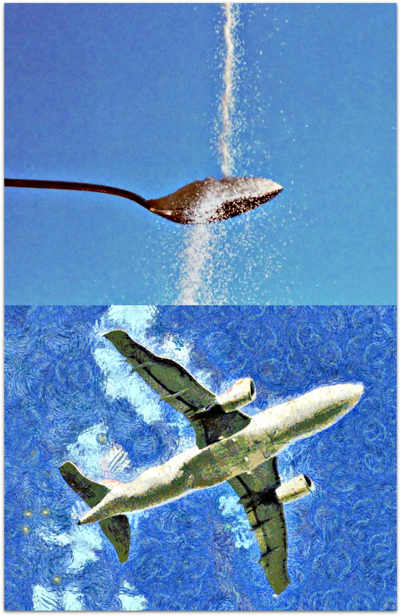 Sugar spoon by jppi (Morguefiles); jet painting by Prawny (Morguefiles).