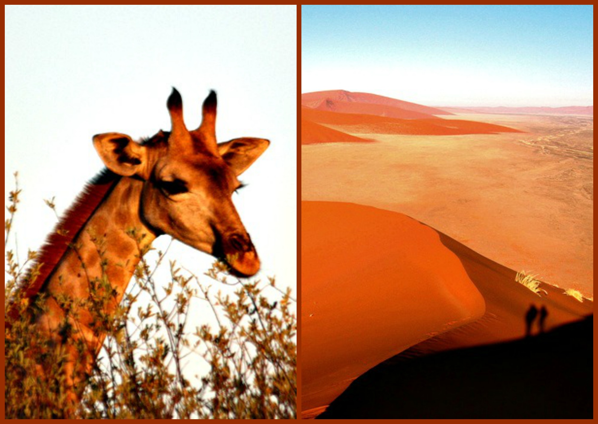 A silent, self-contained Kalahari giraffe and blood orange sands make it into Shireen Jilla’s novel about a group of friends on an African safari. Photo credits: Male giraffe, by Charles Sharp, and Silhouettes in Sossusvlei, by Monica Guy, both via Flickr (CC BY 2.0).