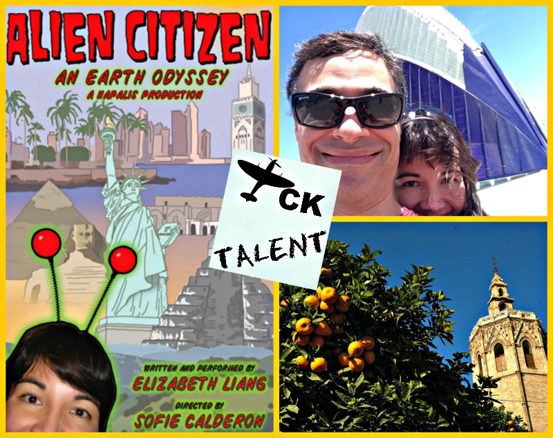 As those of you who subscribe to the Displaced Dispatch will know, Alien Citizen: an earth odyssey, my one-woman show about growing up as a Third Culture Kid, or TCK, of mixed heritage, was accepted by two international conferences in two of the world’s most appealing locations: Valencia, Spain, and Cape Town, South Africa. Thinking I’d be a fool to pass up this kind of opportunity, I launched an online crowd-funding campaign to fund both journeys. Two of us would be going: myself and my husband, Dan, who also serves as my “techie” for the show.